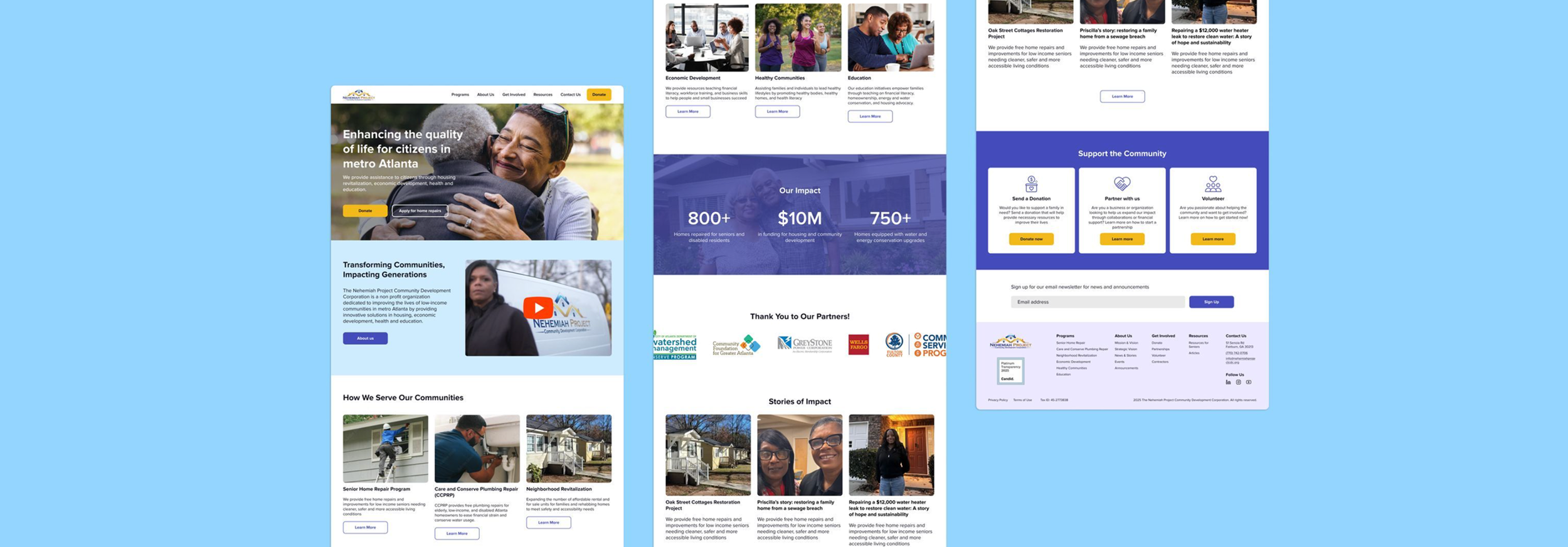 The Nehemiah Project is a non profit that assists low income families with housing repairs and services. As the business was looking to expand its outreach, they encountered a problem: no one understood what exactly they did. Their website did not properly communicate their impact or value, resulting in low community engagement, donations, and partnership opportunities.