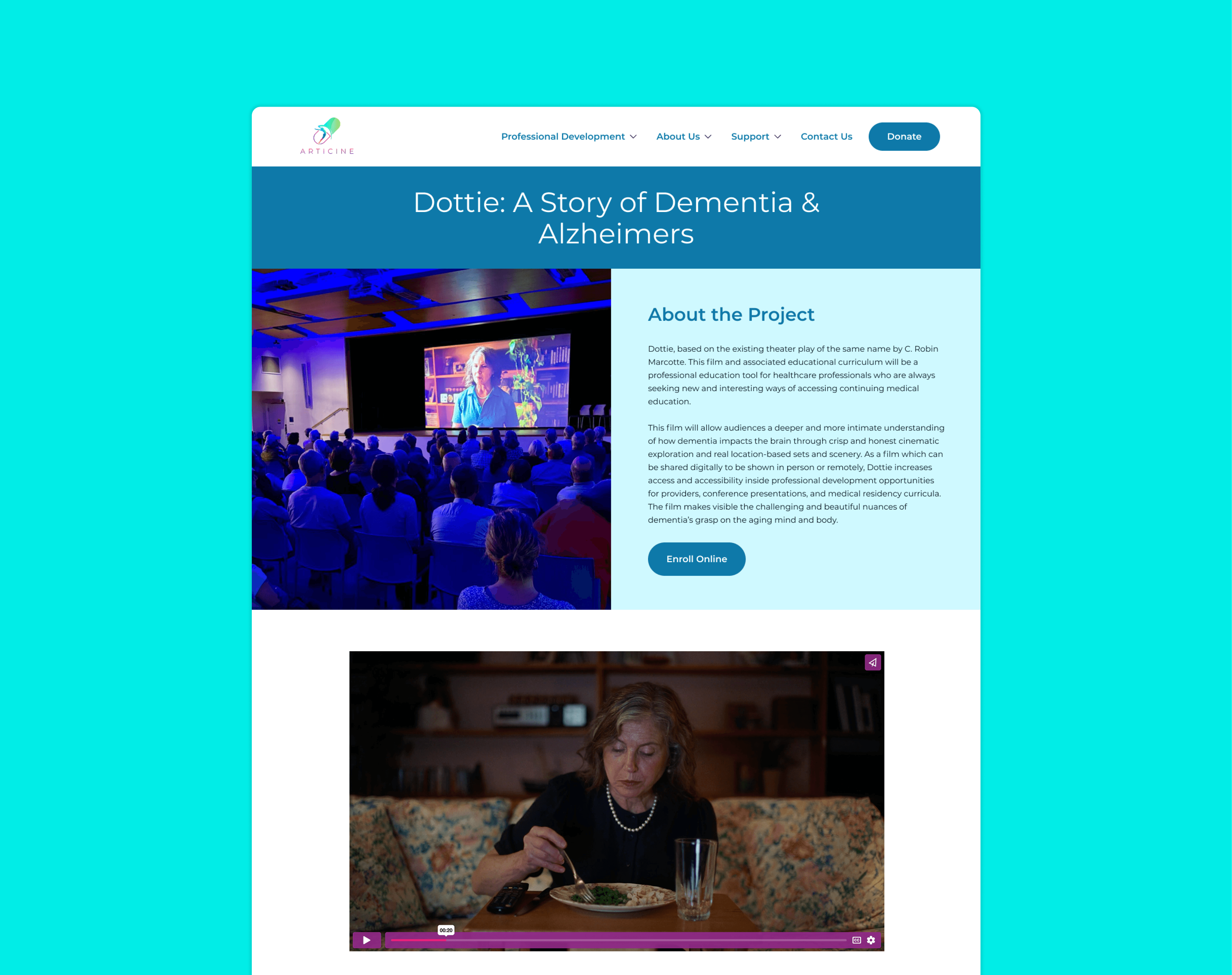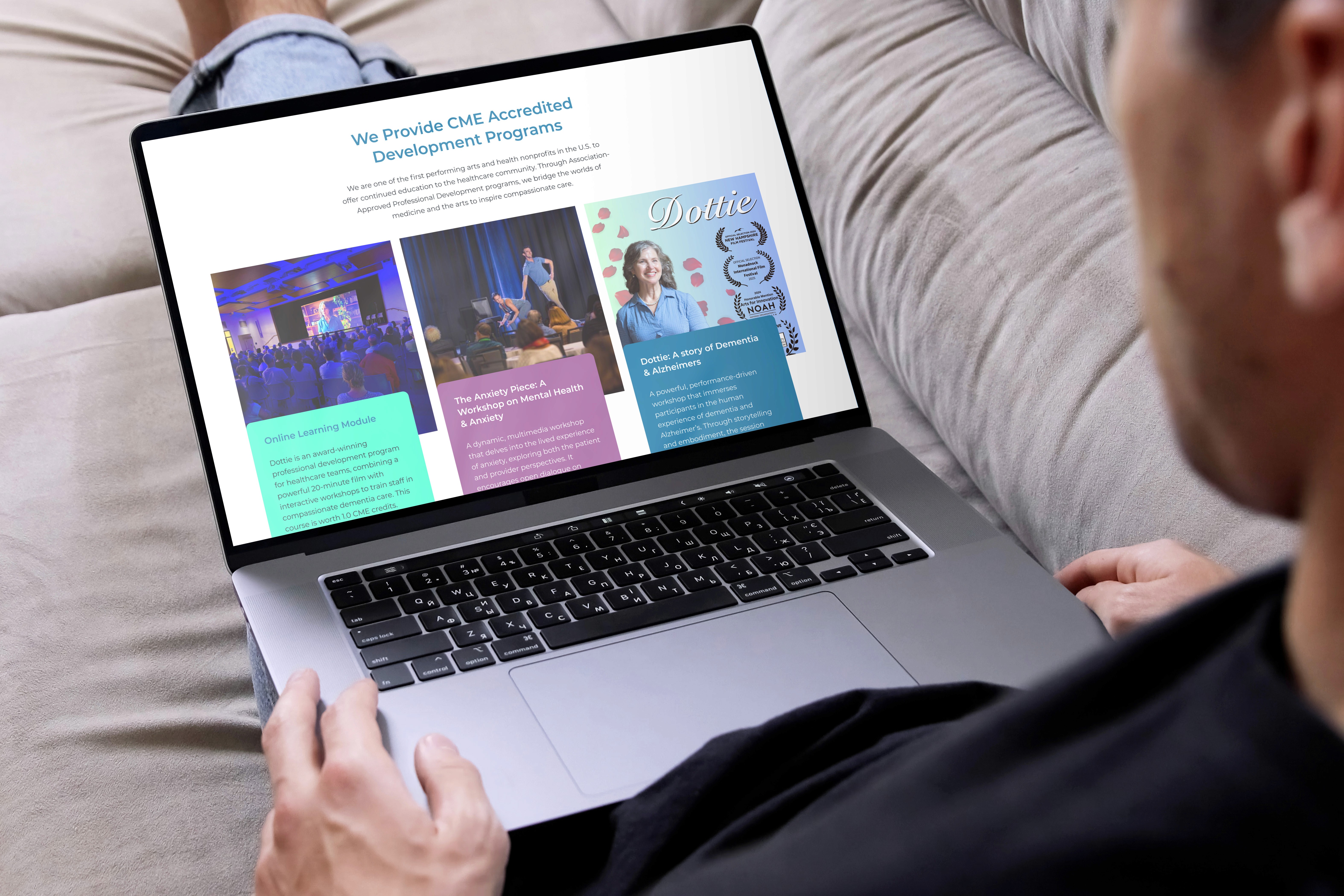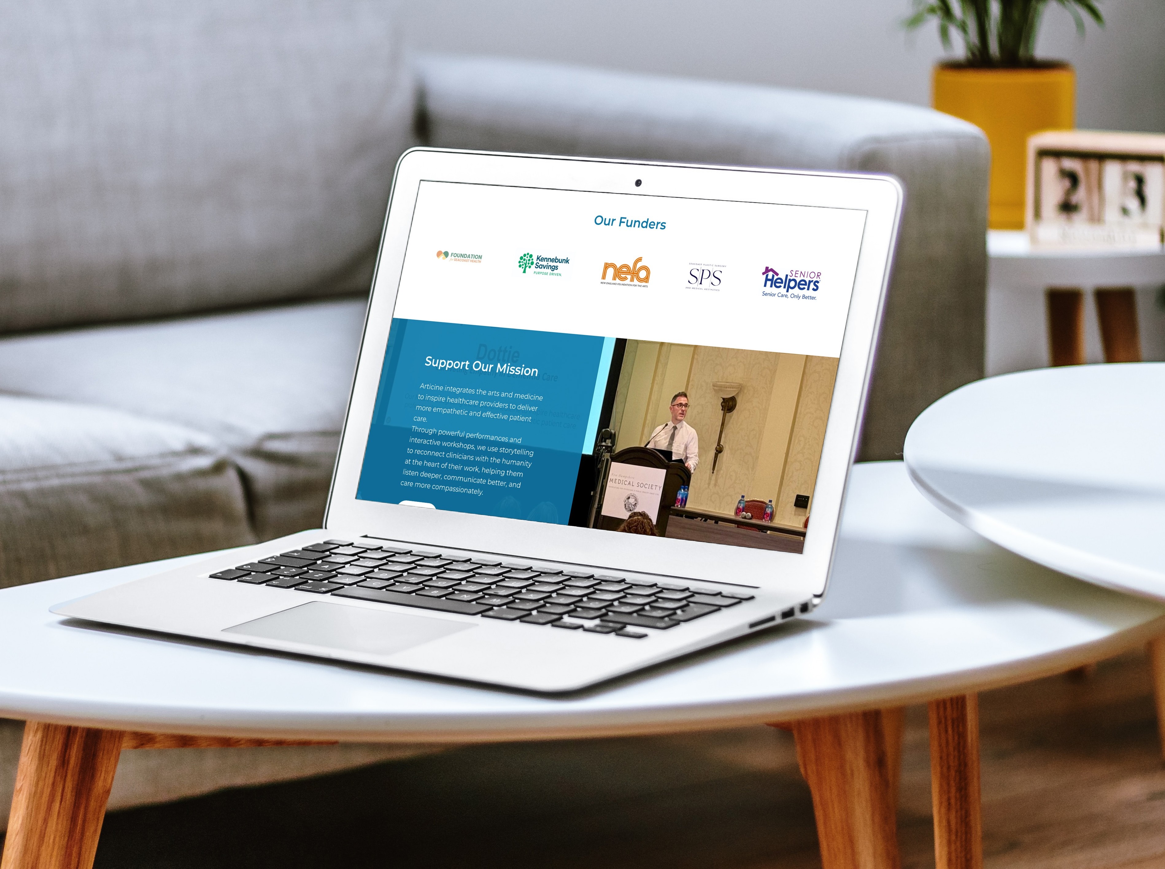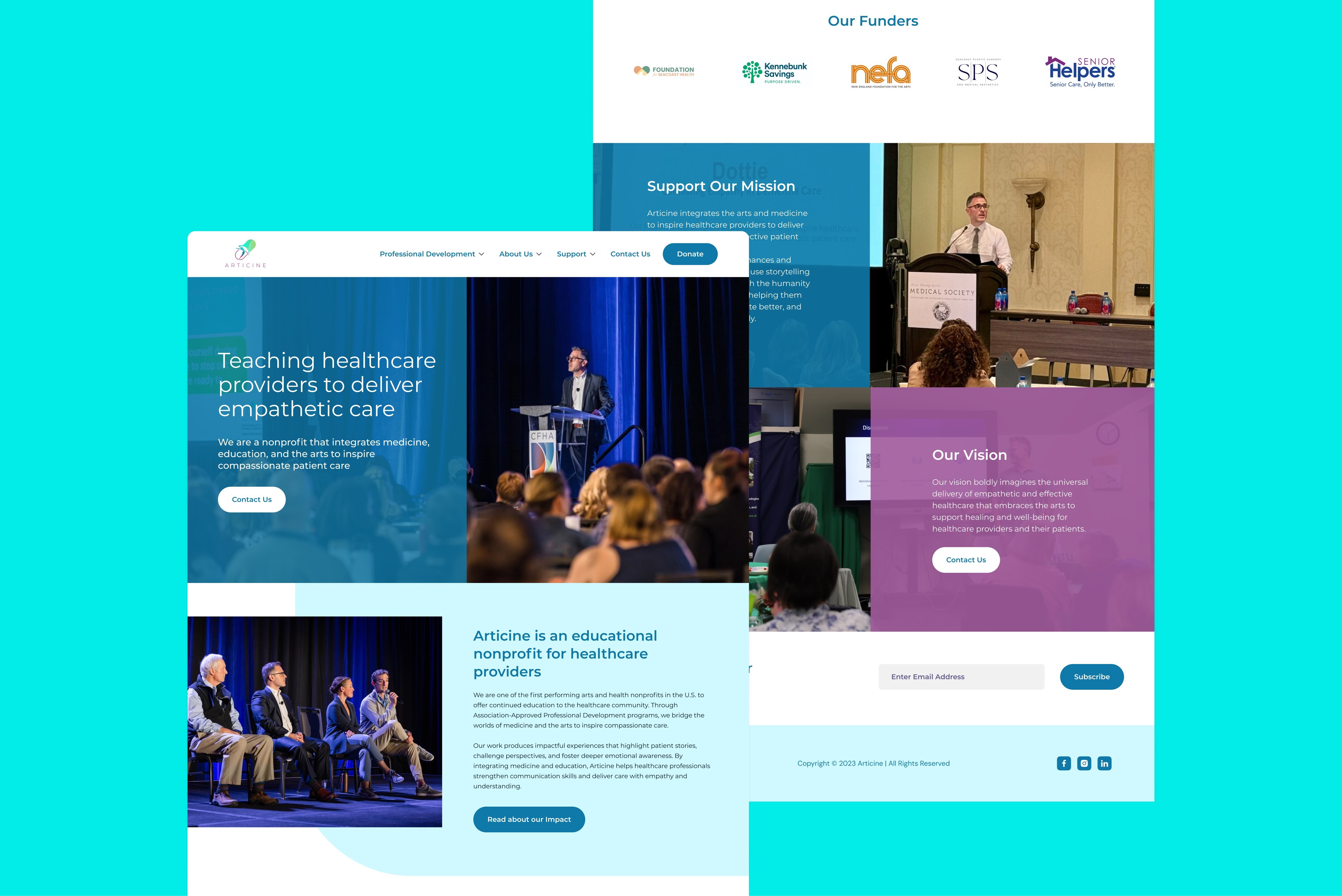 Articine is a nonprofit that uses the performing arts as a professional development tool to help healthcare providers cultivate empathy and connect with patients on a more human level. While Articine’s performances left lasting emotional impact, visitors often couldn’t tell that the organization offered accredited professional development for healthcare providers. Their website emphasized the art but not the education, causing confusion among potential clients and donors. The challenge was to redesign the site to clearly present Articine as an accredited healthcare education nonprofit, highlight its three core programs, and drive partnerships, bookings, and funding opportunities. The new design needed to balance the emotional power of the arts with the credibility and clarity of medical education. We prioritized clear communication and strong visuals to position Articine as an accredited educational nonprofit. The site’s content emphasizes their value to healthcare providers and donors, while the visuals blend their artistic roots with a polished, professional aesthetic.